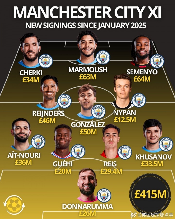 曼城自2025冬窗来买下的新人,的确“壕”。